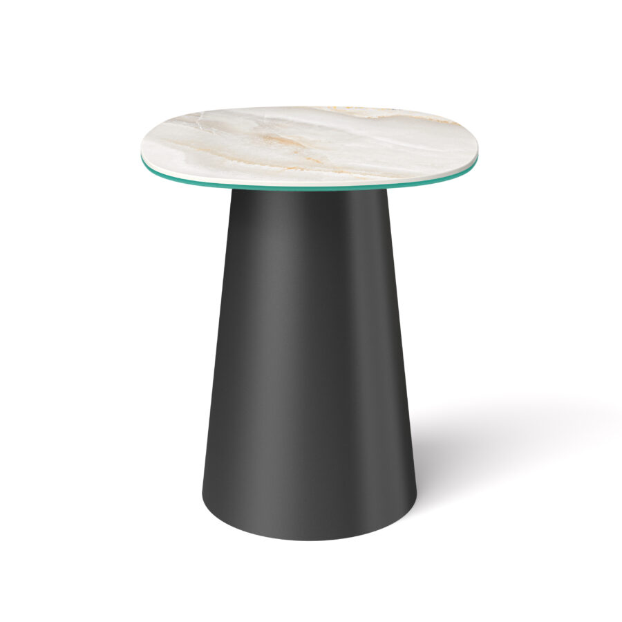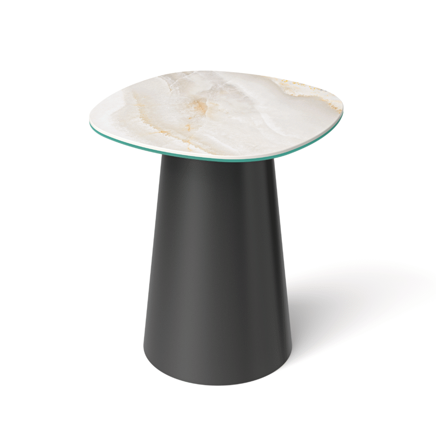 Wyjątkowy stolik który łączy nowoczesną formę z najwyższą jakością wykonania. Model ten został zaprojektowany z myślą o wymagających pomieszczeniach, w których liczy się zarówno estetyka, jak i trwałość na lata. Zaoblony, organiczny, kwadratowy blat ze spieku kwarcowego w eleganckim, jasnym kolorze inspirowanym naturalnym kamieniem nadaje całości luksusowego charakteru i doskonale komponuje się z różnymi stylami aranżacji – od minimalistycznych po nowoczesne i premium.