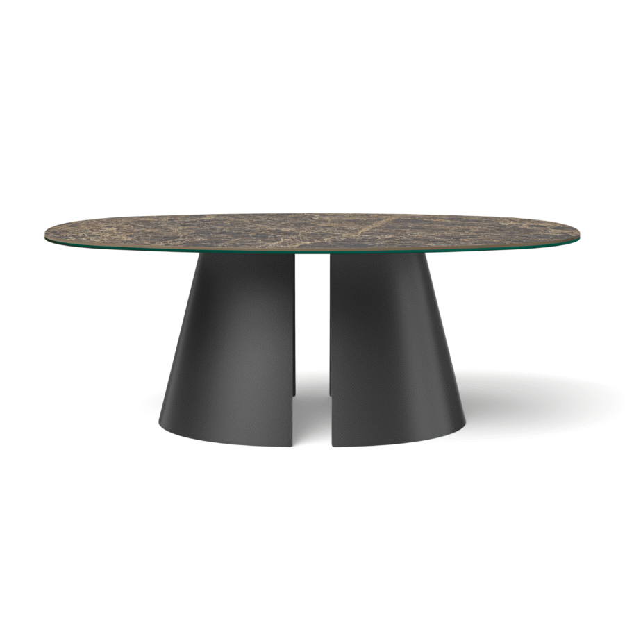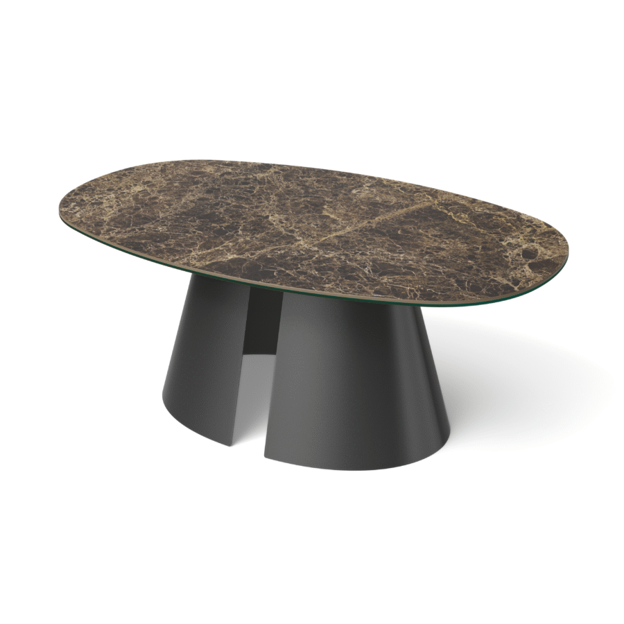 Stolik Rivoli to propozycja dla osób, które cenią wyrazisty design i bezkompromisową jakość wykonania. . Owalny stolik główny i okrągły stolik pomocniczy tworzą harmonijną kompozycję, która podkreśla charakter wnętrz urządzonych w stylu modern, glamour i premium. To propozycja dla osób ceniących luksusowe materiały, minimalistyczne linie oraz ponadczasowy design.